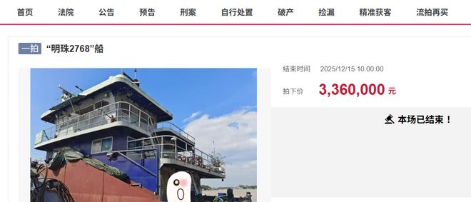 此次拍卖,是这艘货船第一次拍卖,起拍价336万元,评估价420万元。最终拍卖只有一个人报名竞拍,以起拍价就拿下了这艘大型货船。