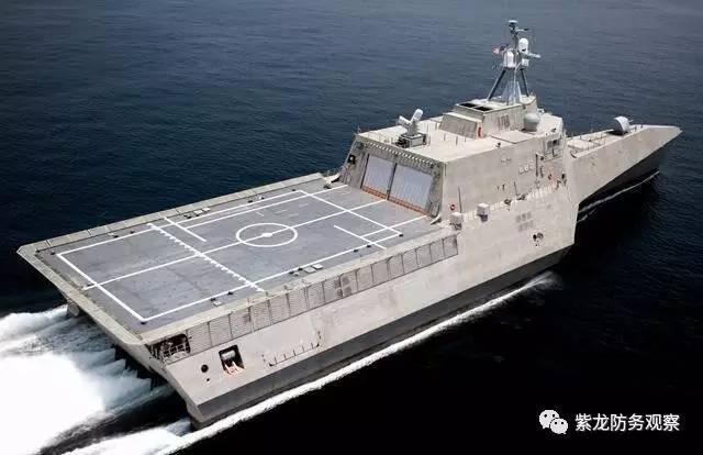 【紫龙防务观察第169期】这种坞舱可用于收放特种部队、小型无人快艇和潜航器;“独立”级的稳定性还要优于“自由”级,更适合在高海况海域执行巡逻任务;“独立”级的侧船体遮住了主船体近50%的轮廓,若遭到反舰导弹攻击,侧船体很可能会起到一定的保护作用,而由于侧船体只承受很小的重量,失去一边的侧船体并不会对整个舰体构成很大影响。
